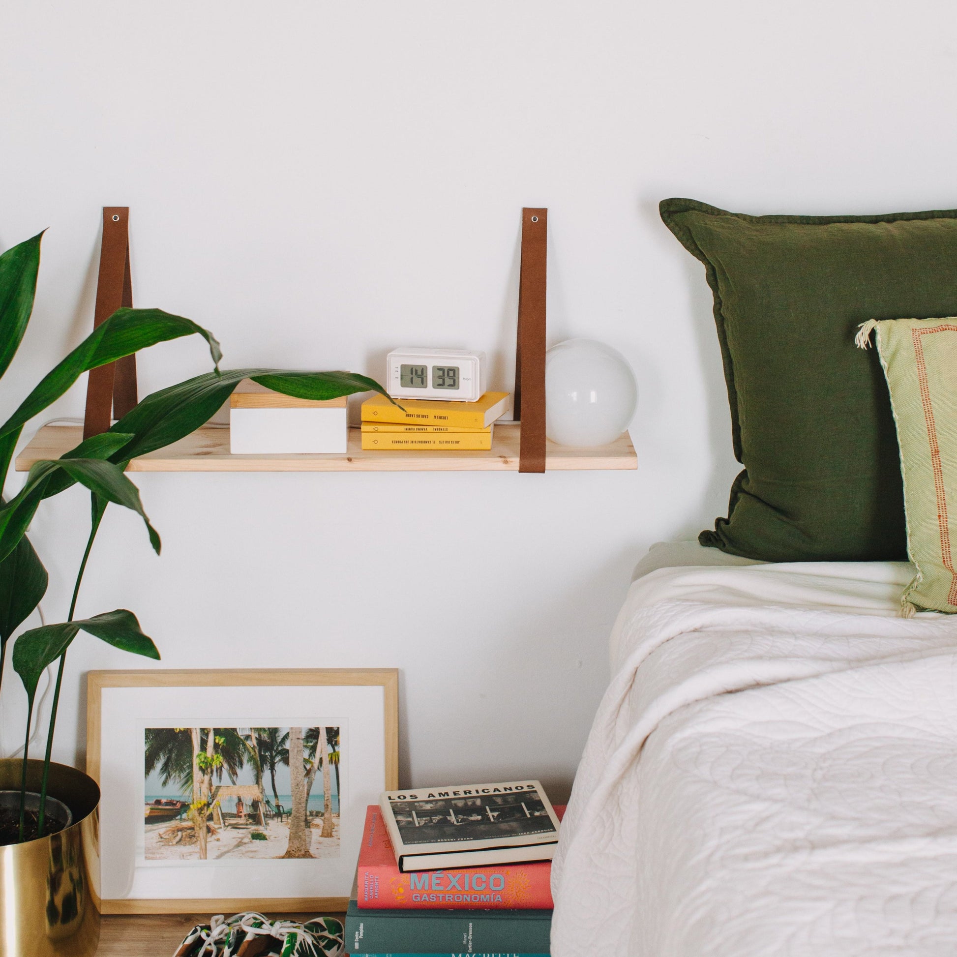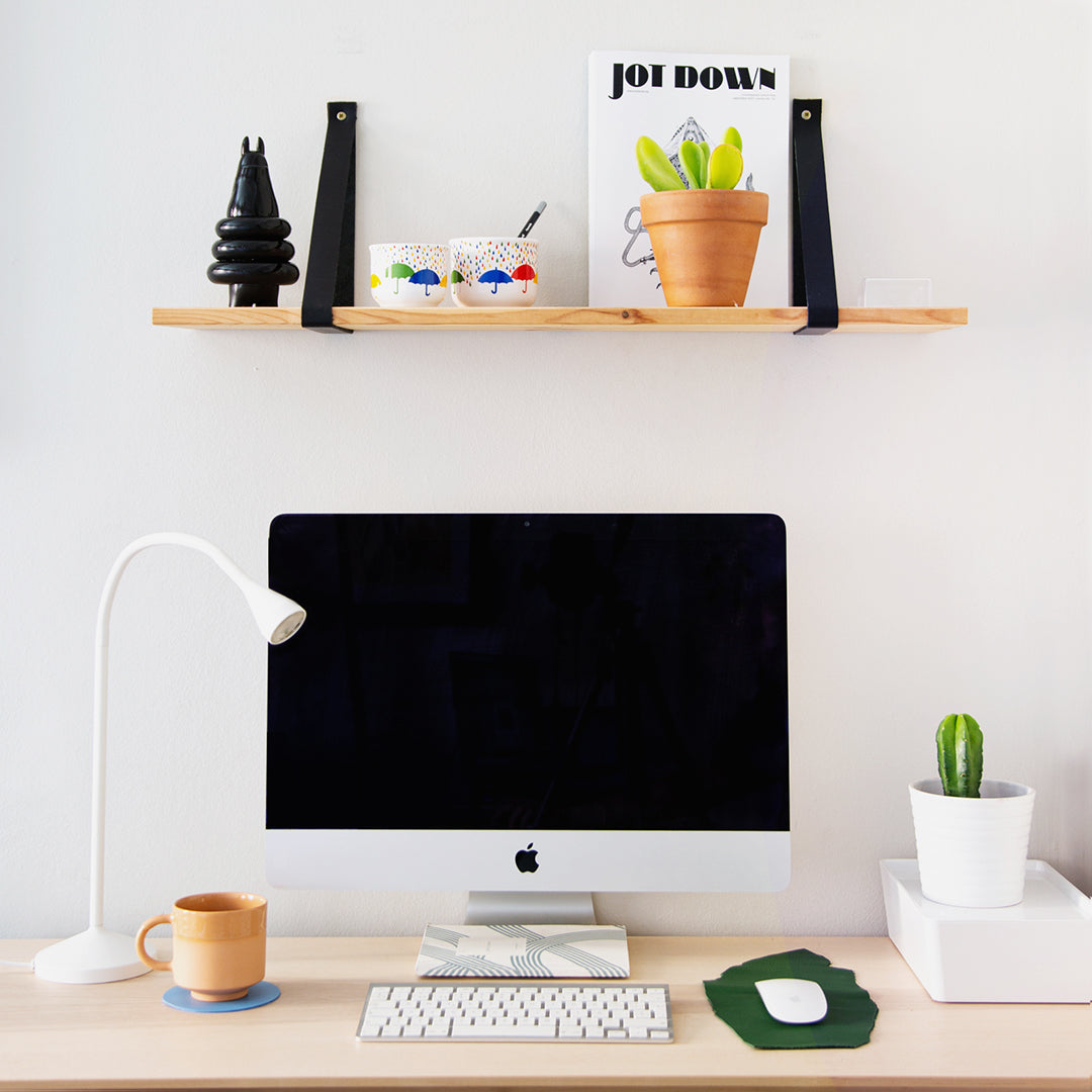 La estantería de madera y cuero que encuentras en tu casa, estudio u oficina. La balda donde colocar las cosas importantes de cada día: en el recibidor con las llaves, de mesita de noche con los libros y despertador, en la cocina con las especias, en el comedor con plantas...